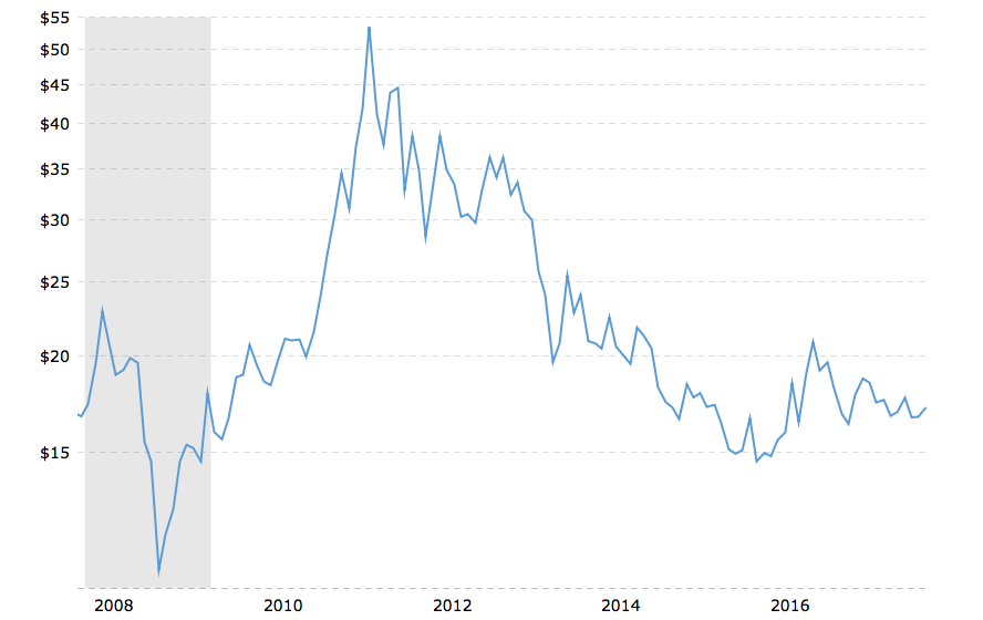 Silver price history charts from chards. The silver price made significant gains in the second half of 2020, rising above us$20 per ounce for the once it breaks through the us$50 level, i think that it's going to get up to the us$100 level pretty quickly, said so if the silver price does rise, how high will it go? Industry experts expect further declines in the years ahead due to higher mining costs. It shows silver price history charts (london silver fixing price) the history of silver as an investment. 10 year historical silver price chart. Track the silver prices in a range of currencies the historical price of silver provides investors with an overview of how silver has traded since records began. Historical commodity price charts colgate share price history. Speaking of which, if you would like to use our historical silver price data to support your own projects, just click the link for our excel spreadsheet. Silver prices history is a fully free service which is provided by the silver price oz website. Silver, unlike other times in its history, may potentially benefit from several key factors including an ongoing rise in industrial demand as well as central bank. Silver price history gets very volatile after the us civil war and silver demonetization. Average annual silver prices for the past 100 years in us dollars. I meet a lot of people that purchase and sell commodityhq did a very interesting article about two years ago about the 2,000 year price the usgs silver estimates that 23,100 metric tons of silver were mined around the world in 2011.